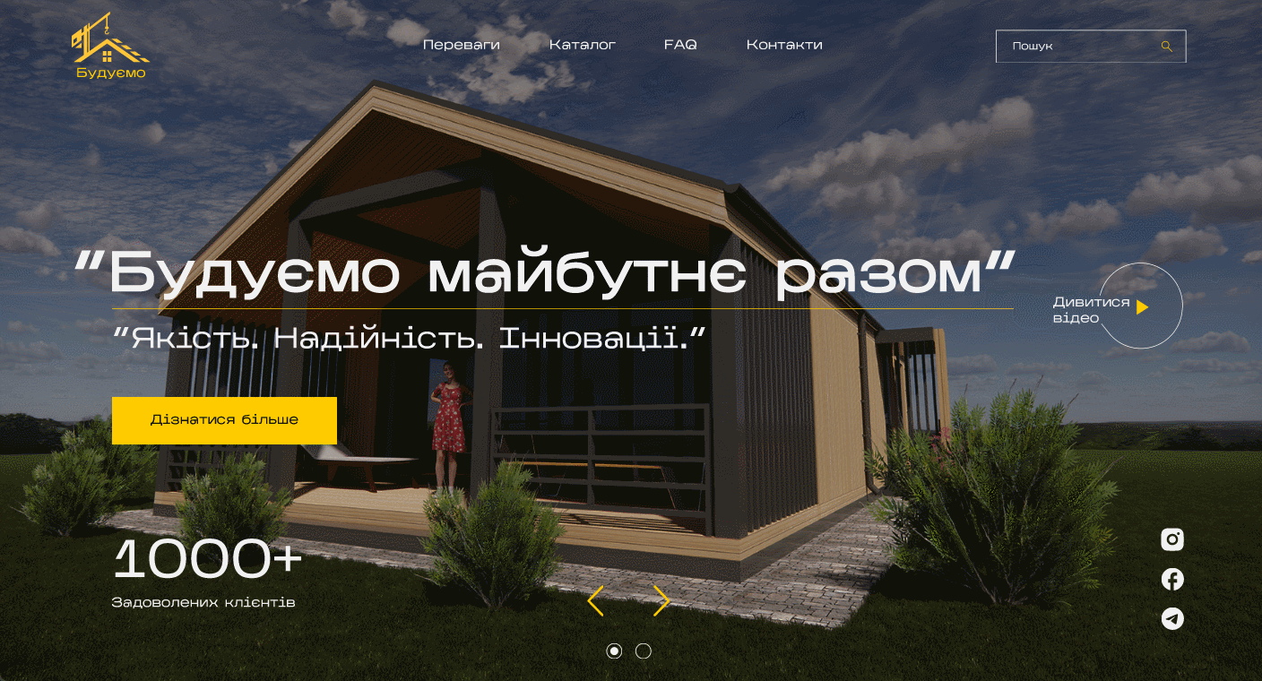 Landing page for modular homes (desktop, mobile adaptation with 2 languages: Ukrainian, English language
